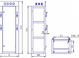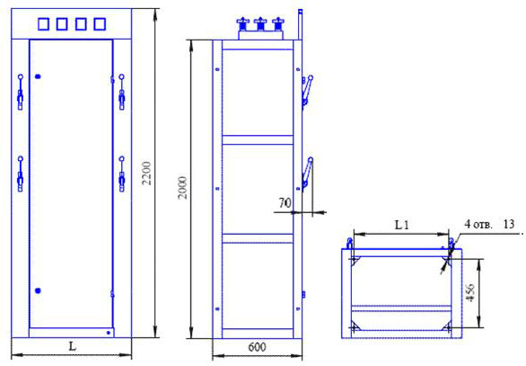 Габарит ЩО-70 высота 2200 (с козырьком), глубина 600 (800), ширина 300, 600, 800 мм. Обслуживание – односторонне. Ошиновка аллюминий (медь по спецзаказу) ЩО-70 комплектуются предохранителями, рубильниками, выключателями российского и импортного производства.