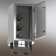 шкаф разделен на 4 средних отдела: кабельный, шинный, выключения и безопасности. КРУ выполнен из нержавеющей оцинкованной стали, которая соединяется с помощью болтовых креплений. Все элементы имеют безопасное заземление, а также легкодоступный проход для ремонта.